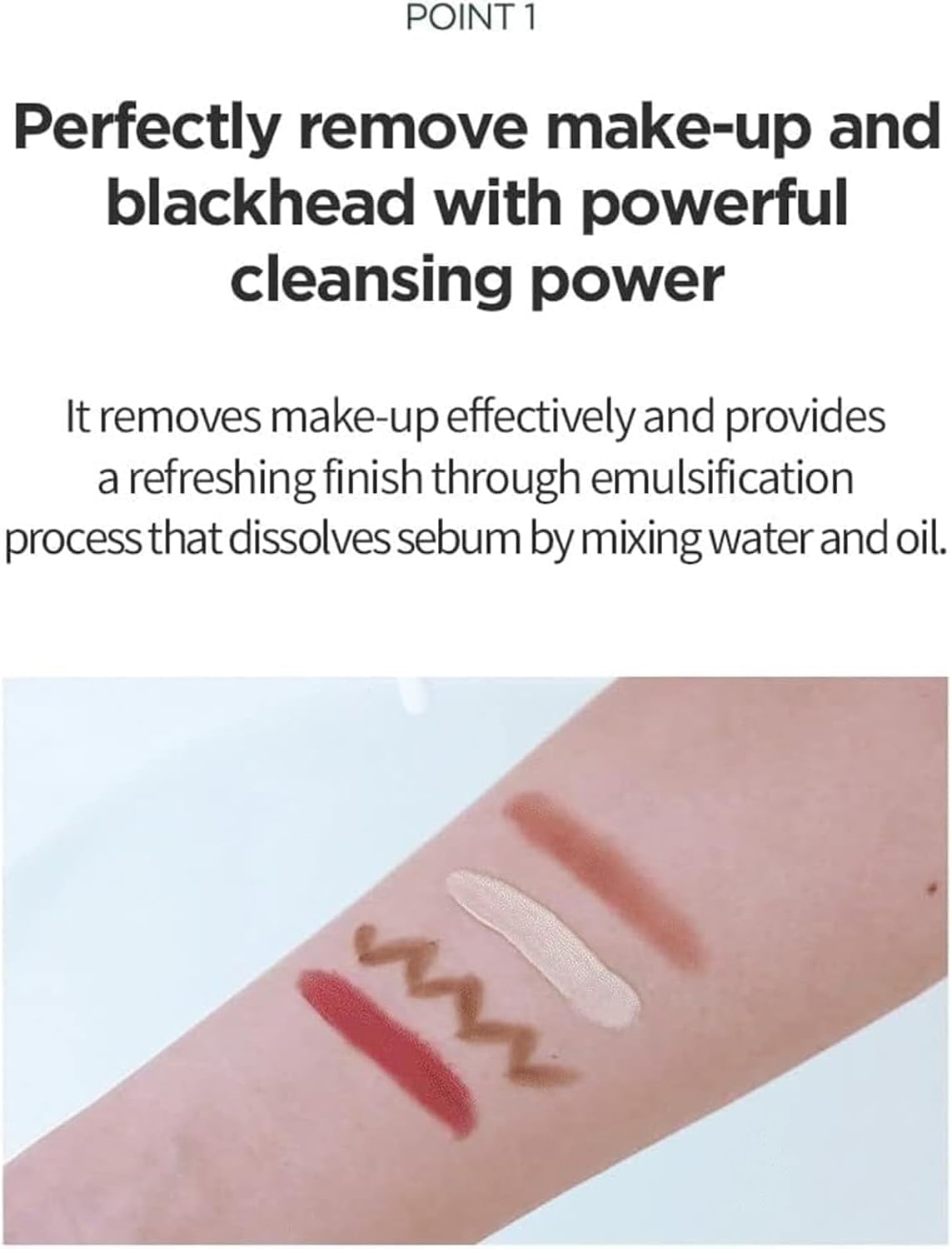 • Provides a refreshing finish through an emulsification process that dissolves sebum by mixing water and oil.